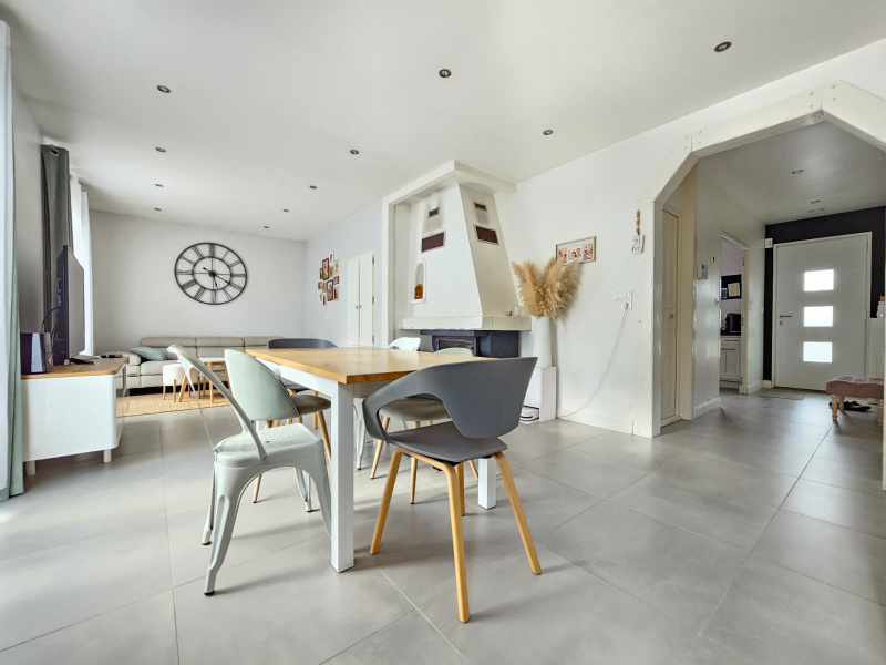 Cette maison offre : au rez-de-chaussée : un double séjour avec cuisine ouverte donnant sur la terrasse.