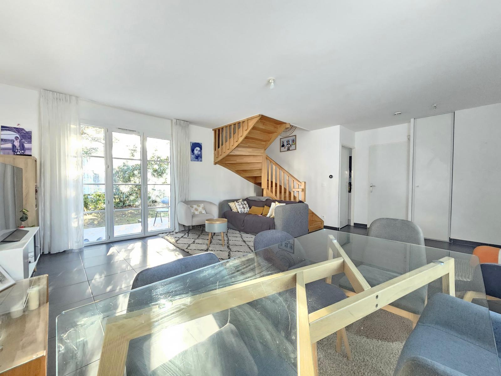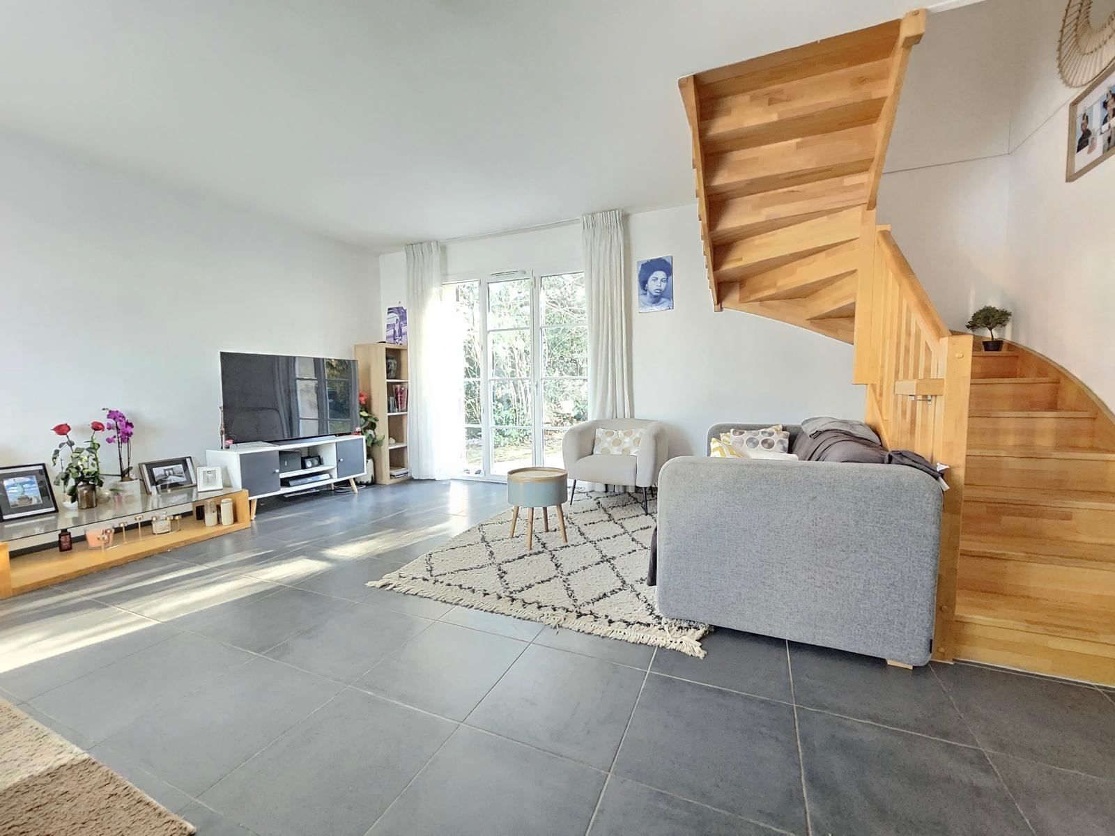 La maison se compose d’un salon séjour spacieux et lumineux d'environ 35 m2 offrant un cadre de vie confortable et convivial avec un accès direct sur la jardin par une grande fenètre. La cuisine américaine, fermée, est entièrement aménagée et équipée, idéale pour allier fonctionnalité et modernité. Une buanderie pratique avec WC complète le rez de chaussée.