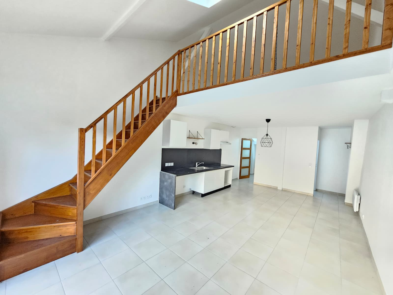 Il se compose d'un salon/séjour avec cuisine ouverte, une chambre ainsi qu'une salle d'eau avec WC et une mezzanine à l'étage.